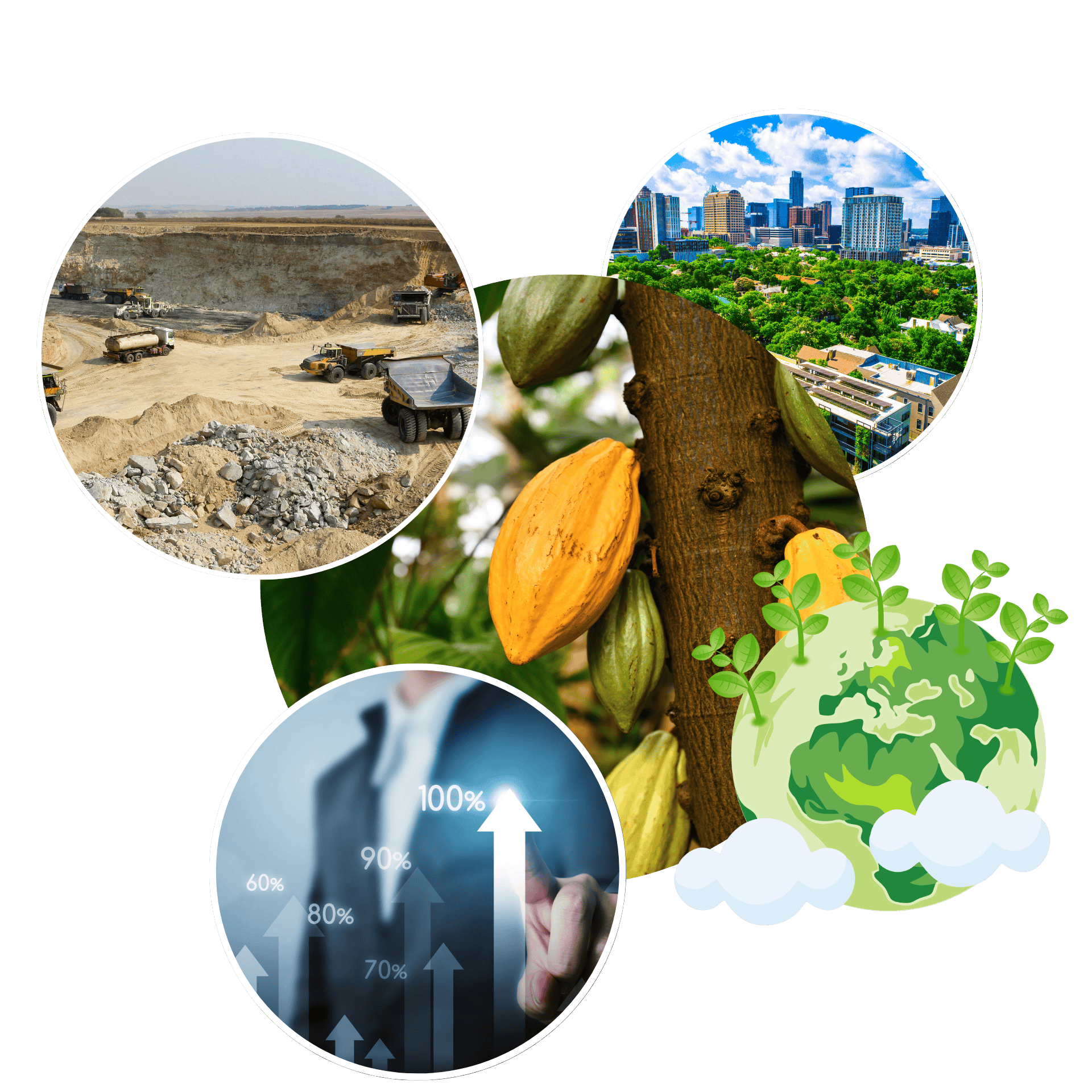 Notre présence dans le secteur primaire vise les activités de production. Nous adressons initialement le domaine minier via les substances minérales de carrières, et le domaine agricole global au travers de l’agriculture et de l’élevage.